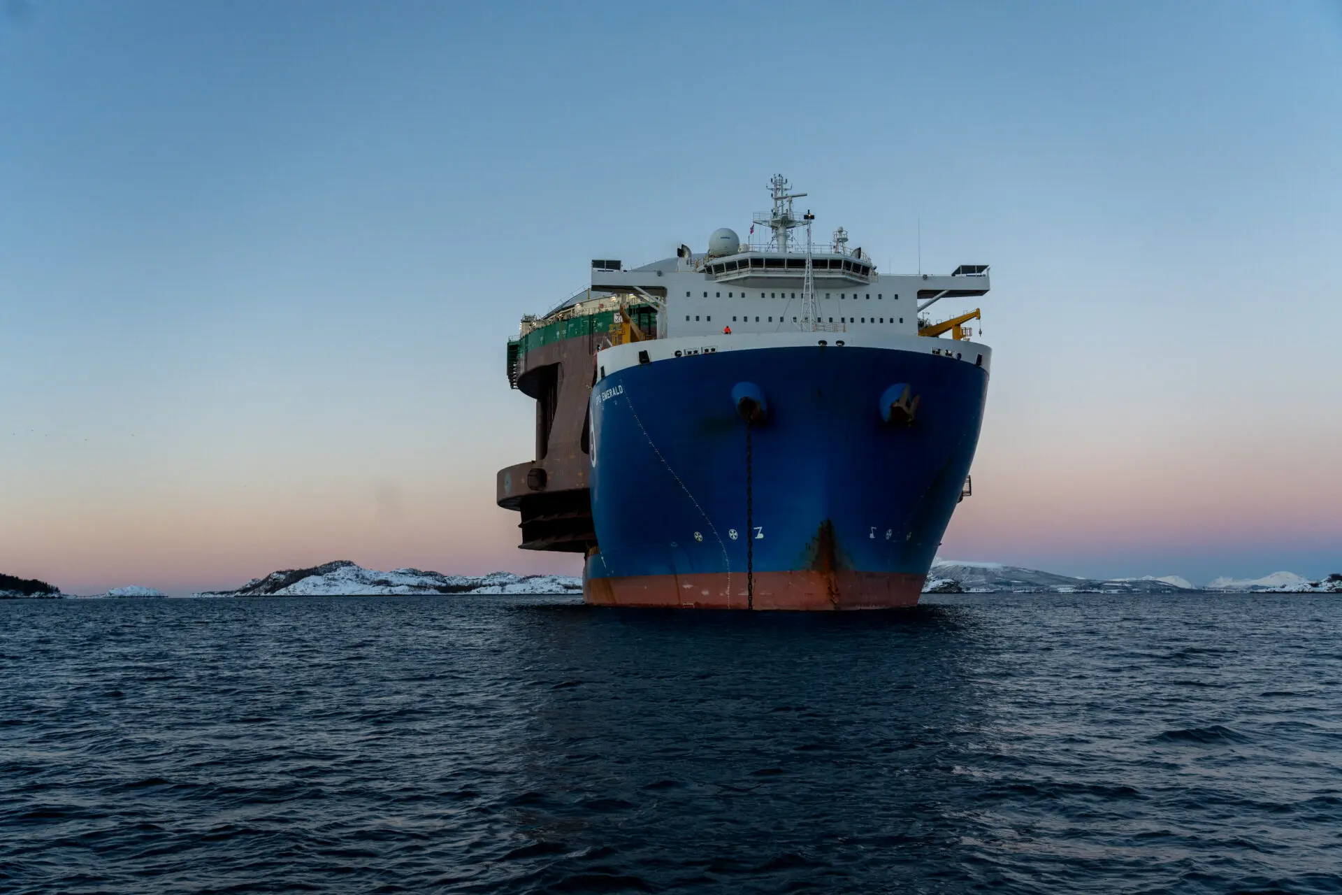 Storbåtsegga fraktes på dekk av GPO EMERALD fra GEMAK-verftet i Tyrkia. Seilingen nordover tar mellom to og tre uker.
